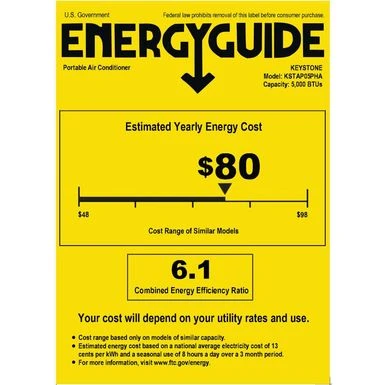 At Keystone, your family’s comfort starts here. The Keystone 5,000 BTU portable air conditioner with I Sense remote control is an excellent choice for cooling a room up to 200 square feet. This exceptional air conditioner features electronic controls with an LED display and a temperature sensing LCD remote control, allowing you to conveniently see, set, and maintain the temperature from across the room. It also includes a constant fan mode, a programmable 24-hour timer, and a sleep mode to save you money while keeping you cool and comfortable. With a Keystone portable air conditioner, you and your family can relax in cool, blissful comfort.