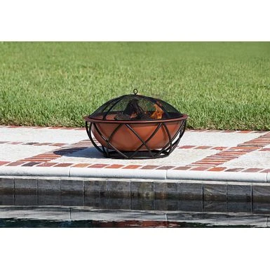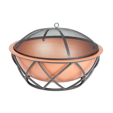 This attractive fire pit features a robust copper-look steel fire bowl which sits inside a stylish supportive base. The voluminous fire bowl can hold more wood allowing for a longer fireside experience. This fire pit comes complete with a one-piece mesh spark screen with high-temperature paint and a screen lift tool.