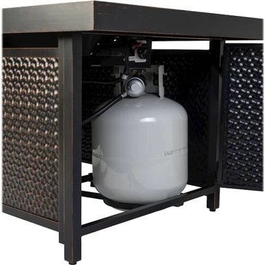 Maximize space with this Fire Sense Weyland fire pit, which doubles as a patio table. The steel burner is elongated to produce a full flame, and clear fire glass is included to conceal the burner. This Fire Sense Weyland fire pit is enclosed, concealing the propane tank, and a hinged door offers easy access.