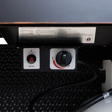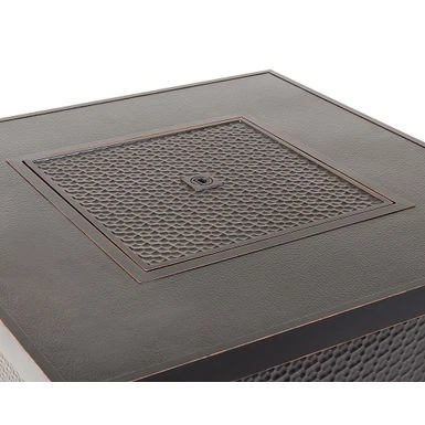 The Weyland Square LPG Fire Pit boasts a hammered antique bronze finish that will be right at home in your outdoor space. With a practical aluminum build and an output of 50,000 BTU, this versatile fire pit pulls double duty in warmer weather as a patio table when covered with the included fire bowl lid. Arriving with clear fire glass for a stylish touch, just add a standard 20lb propane tank behind the handy hinged door. Vinyl weather covers for the fire pit and propane tank are included for your convenience.