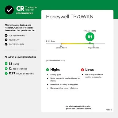 - Honeywell Dehumidifiers are top rated by an independent, US-based product safety-testing agency since 2016 and all Honeywell Dehumidifiers are backed by an outstanding warranty.