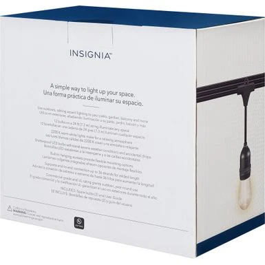 Add a special touch to your outdoor space with the Insignia NS-STRL24FT3 24 Ft. Outdoor String Lights. With 12 bulbs on a 24 ft. string, add warm, illuminating white light to your patio, garden, balcony and more to create a relaxing atmosphere you’ll love. They’re designed with shatterproof LED bulbs, so you can trust they will withstand severe weather conditions without breaking. Easy to use, these lights have built-in handing sockets so they can be easily hung throughout your space. They’re also designed with end-to-end connection so you can attach up to 36 more strands to add additional length. Create a beautiful ambiance with these practical and stylish outdoor lights.