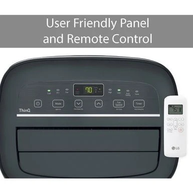 This portable air conditioner is the SMART choice for versatile cooling! Cool your home from anywhere using LG ThinQ technology to control your air conditioner with your phone or use with Amazon Alexa and Hey Google to have control with the sound of your voice. This quiet unit is ideal for cooling medium rooms up to 400 sq. ft. The unit has 2 cooling and fan speeds and a 24 hour timer to create a cooling schedule. The auto-swing air vent helps direct the flow of air where it’s needed most whether cooling, dehumidifying or just circulating air. If there is a power outage, the auto restart feature will automatically turn your unit back on when power is restored. Easy rolling casters allow you to efficiently move the unit to another location. Other features include an LCD remote control, easy window venting installation kit, removable/washable filter and a check filter alert.