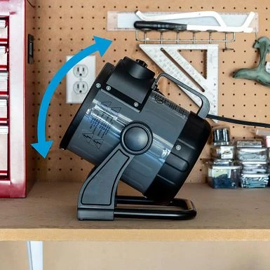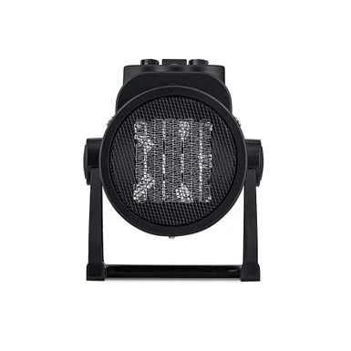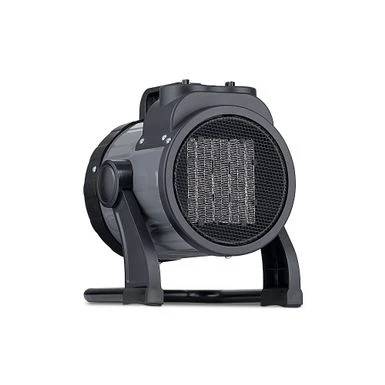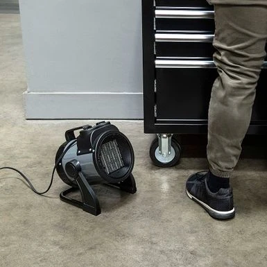 - This portable heater combines the efficiency of a ceramic heating plate with the power of a 200 CFM fan to deliver a steady stream of warm air to your work area. The fan directs air over the heating plate to eliminate cold spots.