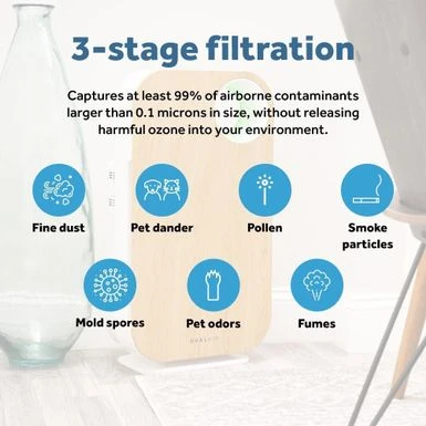 OVAL AIR 3-Stage H13 True HEPA 5-in-1 Air Purifier For Rooms Up To 600 Sq. Ft. Reduces Allergies, Asthma, Pets, Odor, Smoke – Silver