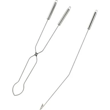 - The unique angle of both the poker and tongs allows you to safely add or adjust the wood while keeping your arm away from the flame.